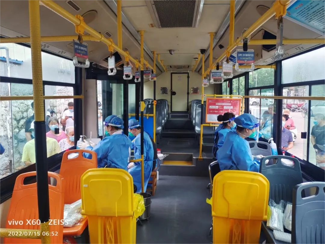 7月15日,新一輪全員核酸檢測(cè)開(kāi)始了。交控公交再次吹響集結(jié)號(hào),為保障我市核酸檢測(cè)工作順利開(kāi)展,全力配合醫(yī)務(wù)人員齊心抗疫。凌晨4:30分,各營(yíng)運(yùn)公司核酸采樣流動(dòng)車(chē)陸續(xù)到達(dá)指定地點(diǎn),協(xié)助社區(qū)以最快速、最短時(shí)間完成核酸檢測(cè)工作。