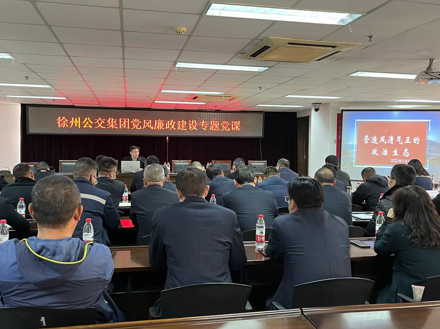 為深入學(xué)習(xí)貫徹落實(shí)黨的二十大精神,堅(jiān)定不移推進(jìn)全面從嚴(yán)治黨向縱深發(fā)展,營造集團(tuán)風(fēng)清氣正的政治生態(tài),11月17日,徐州公交集團(tuán)開展黨風(fēng)廉政建設(shè)專題黨課。公交集團(tuán)黨委副書記、總經(jīng)理袁夫松主持會議,集團(tuán)機(jī)關(guān)部室、基層單位負(fù)責(zé)人等50余人參加學(xué)習(xí)。