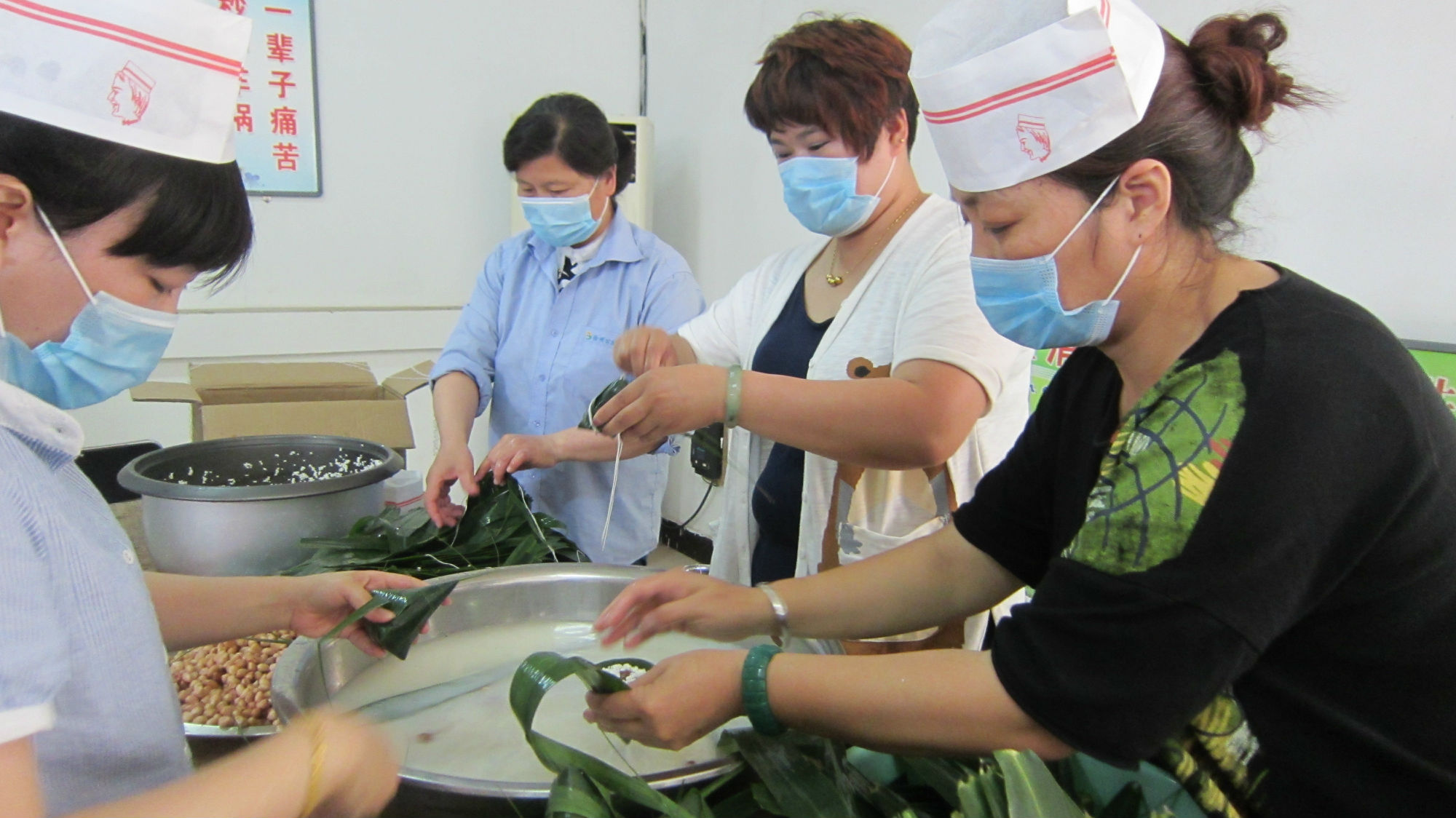 端午節(jié)前夕,各單位工會紛紛開展了“粽葉飄香、情濃端午”包粽子送關愛活動。公司工會共撥付經(jīng)費1.2萬元,各單位組織員工自己采購、自己動手,共包粽子萬余個,均送到每位員工的手中。