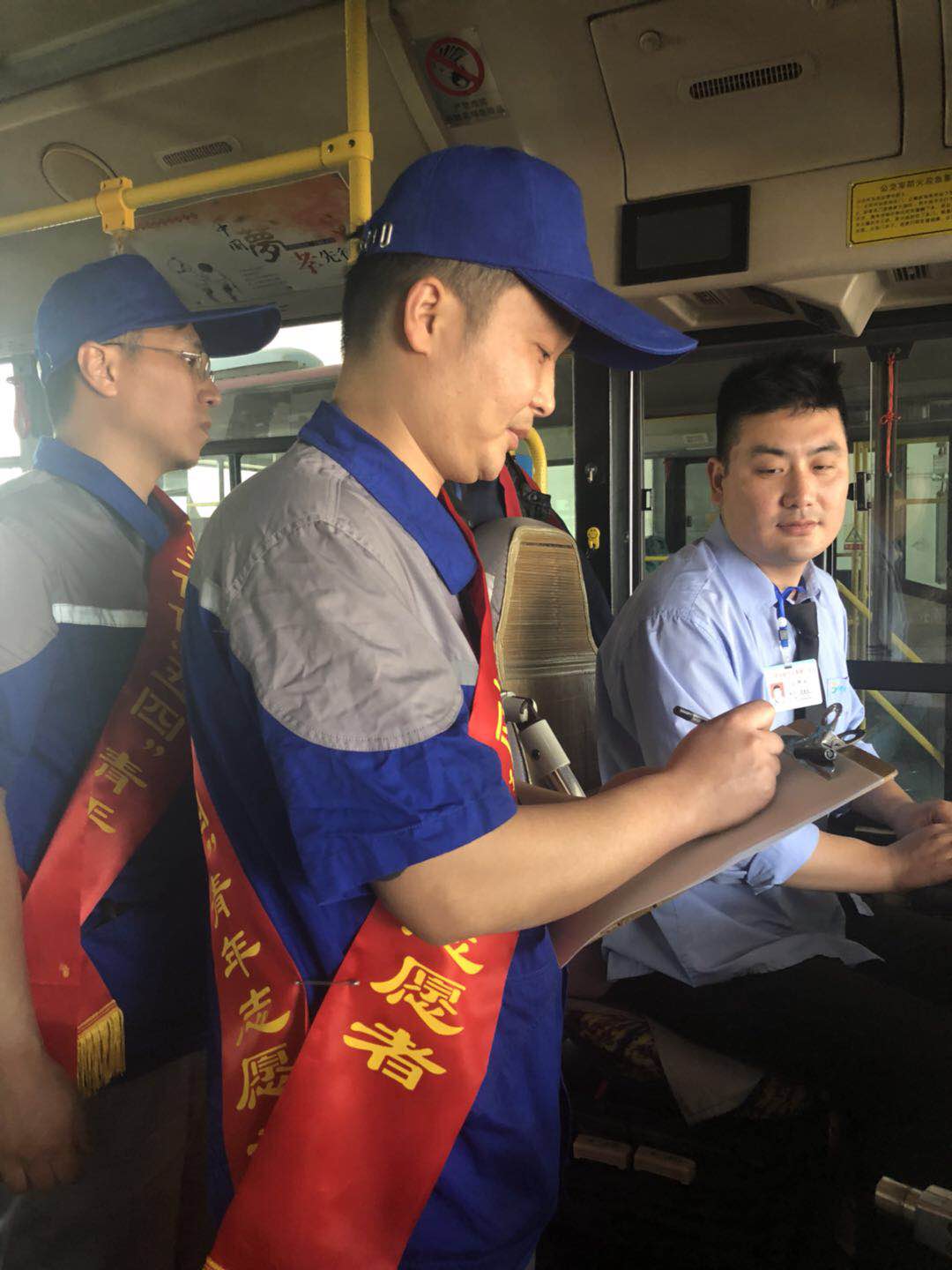 47名公交青年職工身披紅色綬帶,分組來到民樂園、風(fēng)華園、惠民小區(qū)、高鐵、淮西客運(yùn)站等居民小區(qū)、站臺(tái),發(fā)放《公交乘車指南》,邀請(qǐng)熱心乘客填寫《乘客滿意度調(diào)查表》,傾聽市民的意見和建議。同時(shí),幫助市民安裝手機(jī)“掌上公交”APP,添加徐州公交微信公眾號(hào)方便市民及時(shí)了解公交信息動(dòng)態(tài),并贈(zèng)送紀(jì)念品。在高鐵等公交站臺(tái),公交青年看到需要幫助的乘客,還不時(shí)去攙扶老年乘客、幫助乘客搬運(yùn)行李等,在淮西客運(yùn)站車場(chǎng),保修青年志愿者幫助駕駛員檢修車輛,傾聽駕駛員意見和建議。