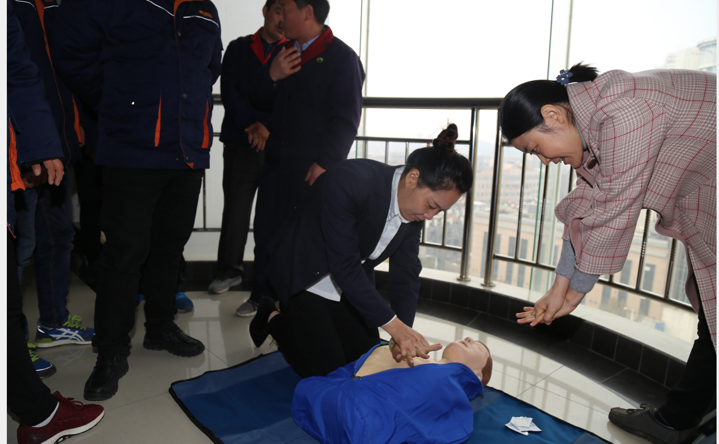 接著,徐州市紅十字會專業(yè)應(yīng)急救護培訓(xùn)師王迎春老師為大家上了一堂生動形象的應(yīng)急救護培訓(xùn)課。王老師將理論結(jié)合實踐,深入淺出地講解并演示了現(xiàn)場救護、心肺復(fù)蘇、人工呼吸、氣管異物堵塞處置等緊急救護的操作技能。期間,參培人員還在老師的指導(dǎo)下認真動手演練,并就公交車行駛中遇到突發(fā)病乘客的應(yīng)急救護進行了咨詢。