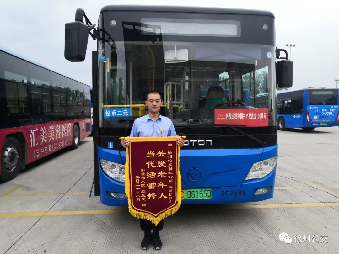 8月5日下午,兩位中年乘客帶著一面錦旗和一大包水果來到人才家園公交首末站,感謝陳新讓暖心幫扶自己的父親。