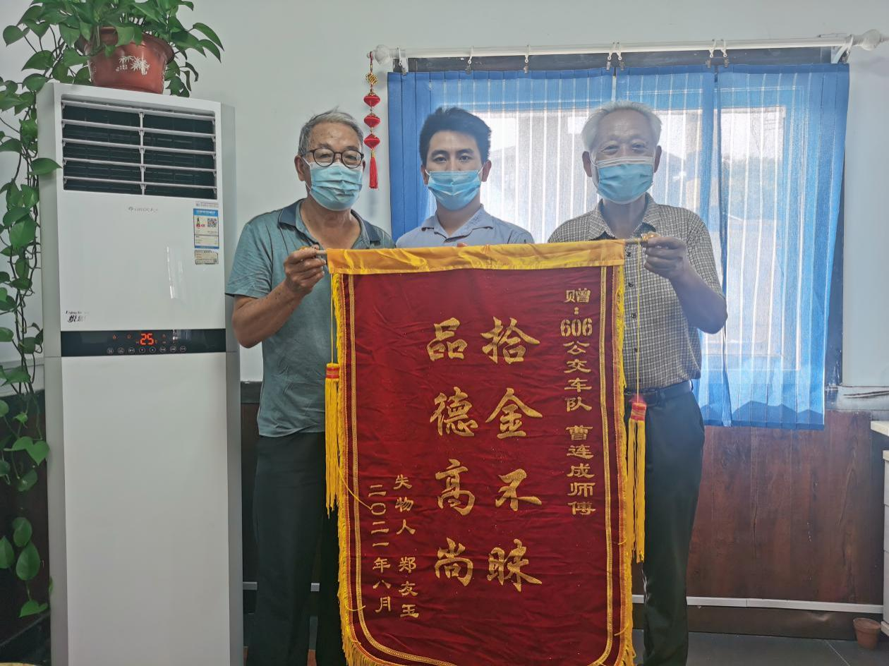 8月30日中午11點(diǎn)左右,市民鄭先生與同伴在大福源乘坐606路公交車趕往九七醫(yī)院就醫(yī),到醫(yī)院后發(fā)現(xiàn)錢包丟,鄭先生萬(wàn)分著急,在同伴的提醒下,他來(lái)到606路韓山調(diào)度室尋找失物。果不其然,鄭先生的錢包被駕駛員曹連成師傅送到調(diào)度室妥善保管。鄭先生萬(wàn)分感謝說(shuō)道:“錢包里除了現(xiàn)金和各類銀行卡外,還有醫(yī)??ā⑸绫??,補(bǔ)辦十分麻煩,咱們司機(jī)師傅真是幫了大忙。”9月1日,鄭先生特意送來(lái)錦旗表達(dá)謝意。