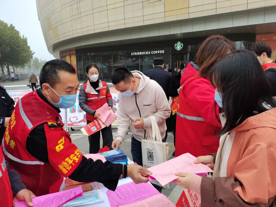 活動現(xiàn)場,徐州公交雷馳平安志愿者服務隊的隊員們向路過的市民分發(fā)志愿者宣傳單和口罩、購物袋等精美小禮品。