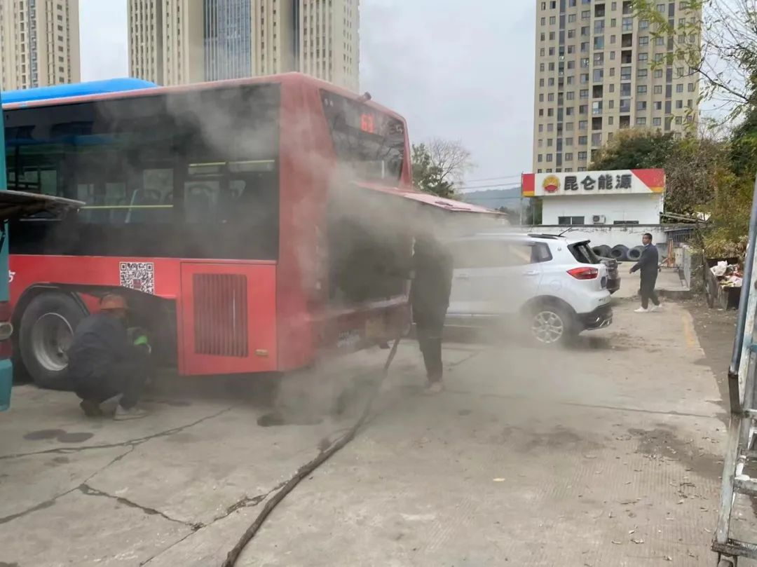 干冰清洗可在不影響營(yíng)運(yùn)的情況下在線清洗。為增強(qiáng)車輛運(yùn)營(yíng)效率,縮減空駛里程,節(jié)約集團(tuán)燃料費(fèi)用成本,金通公司協(xié)同施工方前往車輛所停的車場(chǎng),利用車輛休停時(shí)間分批次清洗,修理人員現(xiàn)場(chǎng)協(xié)助,確保清洗質(zhì)量。