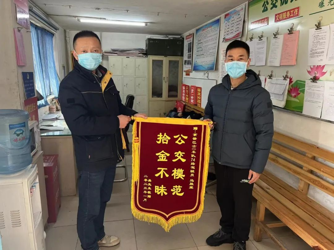 117日上午9時(shí),徐州公交京徐巴士公司一車隊(duì)收到了一面印有公交模范,拾金不昧的錦旗。