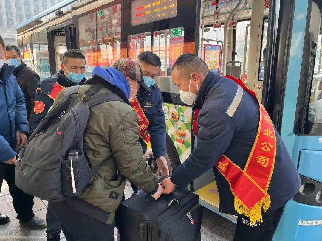 春運期間,城北巴士公司黨支部組織愛心服務隊和黨員先鋒崗在徐州站等客流密集站點開展志愿服務,維持現(xiàn)場乘車秩序,幫助乘客搬運行李,開展“三品”檢查,他們以嚴謹?shù)淖黠L、熱情的態(tài)度、溫暖的話語,贏得了乘客廣泛好評。此外,文明引導員在站點詳細記錄客流情況,提醒乘客戴好口罩,有序上車,并傾聽乘客反饋意見。
