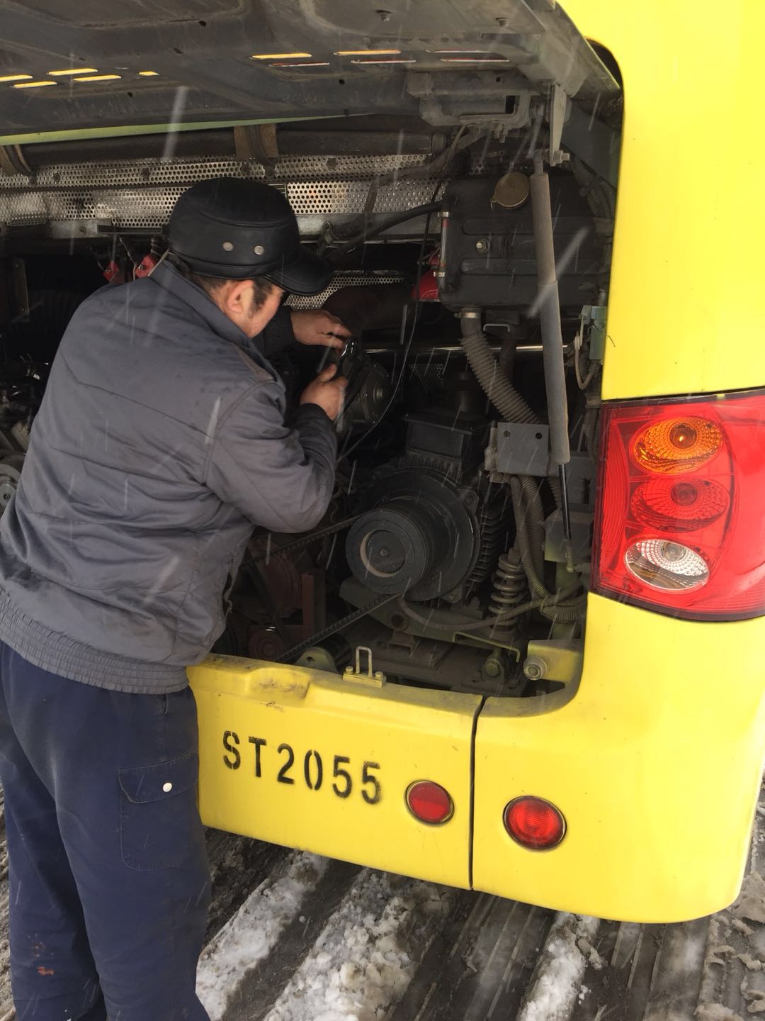 為保證冰雪嚴(yán)寒天氣公交車運(yùn)力正常,公司提前對(duì)2300余輛公交車進(jìn)行了安全性能的全面普查及換季保養(yǎng)作業(yè)項(xiàng)目,進(jìn)一步加強(qiáng)車輛的日常維護(hù)及“三檢”,嚴(yán)格執(zhí)行維保規(guī)范,確保車輛設(shè)備的防凍液冰點(diǎn)值不低于-15℃,并提前更換了-10號(hào)柴油,防止燃?xì)廛囕v冰堵。修理人員冒著風(fēng)雪,手凍得通紅仍堅(jiān)持在現(xiàn)場(chǎng)搶修車輛;智能調(diào)度平臺(tái)利用3G視頻實(shí)時(shí)監(jiān)控線路運(yùn)營(yíng)情況,利用車載語(yǔ)音不斷播放安全提示,做好雪天行車安排;公交出租450輛出租車全部出車……4日晚,市區(qū)雪深已達(dá)375px,氣溫-7℃。大雪造成高鐵晚點(diǎn)6小時(shí),10路線立即增派7輛加班車增加24個(gè)班次,直至5日凌晨4:07最后一班車發(fā)車,堅(jiān)決不滯留一名乘客,全力保障了雪天市民的安全出行。